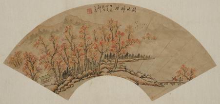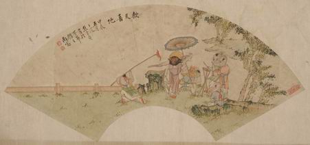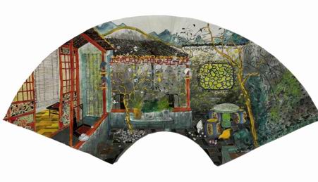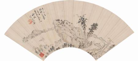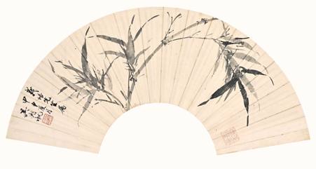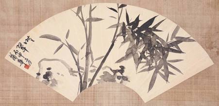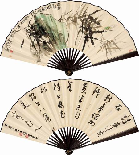 作品:韩敏、陈佩秋 2004年作 竹石鸣蝉·书法 成扇 01