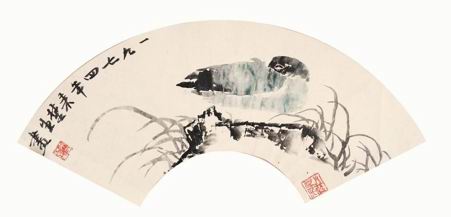 作品:来楚生 兰石栖禽 01