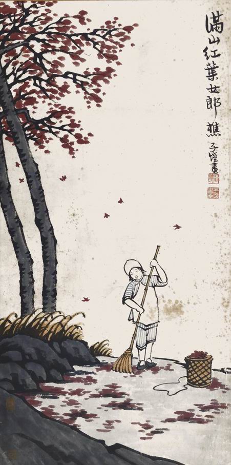 作品:丰子恺 满山红叶女郎櫵 01