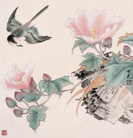 作品:田世光 禽戏花梢 04
