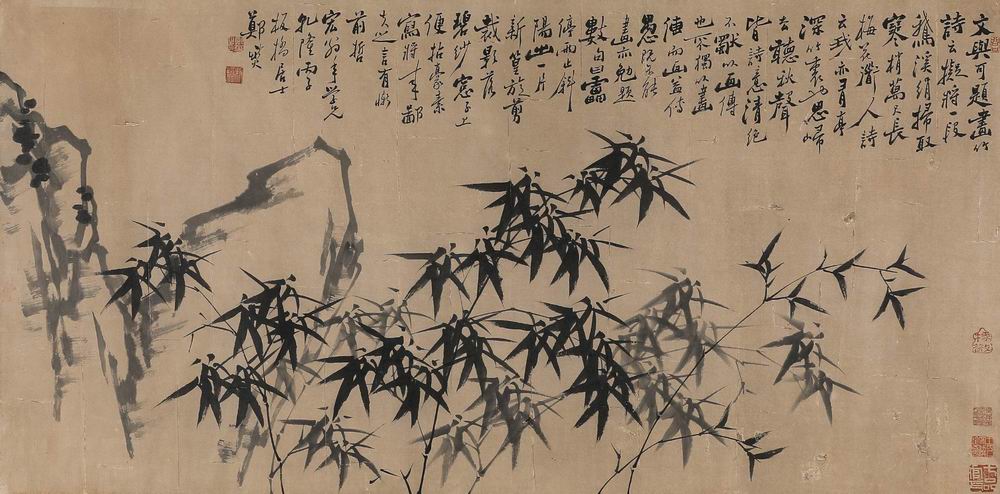 备注:创作年代:乾隆丙子1756。款识:文与可题画竹诗云……宏翁年学兄,乾隆丙子,板桥居士郑燮。钤印:郑燮之印(白) 板桥(白) 谷口(朱) 樗散(朱) 七品官耳(白)。 鉴藏印:震泽徐氏藜光阁所藏书画(朱)。王氏宗鳞珍藏(白)。