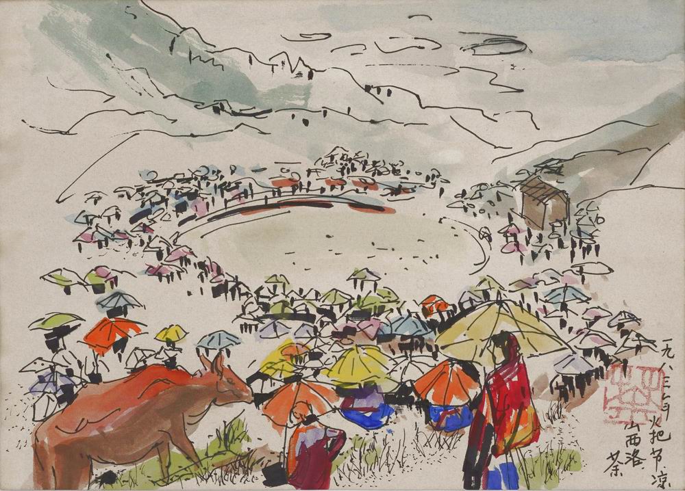 备注:款式:一九八三,年 火把节凉山西洛 荼 。钤印:荼。备注:2511zj-xlys得自书画机构。