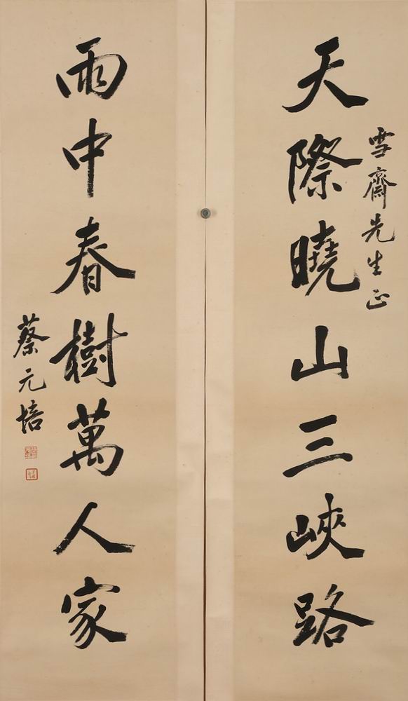 备注:识文:天际晓山三峡路,雨中春树万人家。款识:善斋先生正,蔡元培。钤印:蔡元培印(白) 孑民(朱)。备注:2502rb-bs。