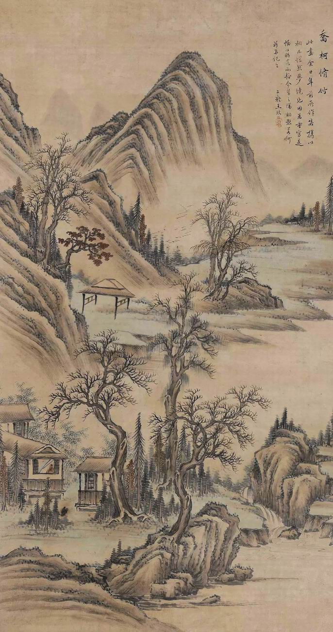 备注:题识:乔柯修竹。此画余廿年前所作。客携此相?茫然梦境也。固为重写是幅以贻客而较今昔之隔相思若何并再纪之。二痴王玖。 钤印:二痴。 备注:(171111bj-bl)得自书画机构。(1912bj-jd)。
